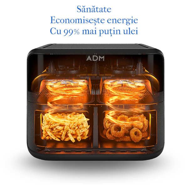 Descoperă o modalitate mai sănătoasă de a te bucura de preparatele preferate cu friteuza cu aer cald ADM Double Air Fryer, dotată cu două coșuri independente. Creată pentru bucătăriile moderne, utilizează tehnologia de circulație rapidă a aerului pentru a oferi mese crocante și gustoase, cu foarte puțin ulei. Ideală pentru familii și pentru cei care apreciază versatilitatea, confortul și gustul excelent la fiecare masă.