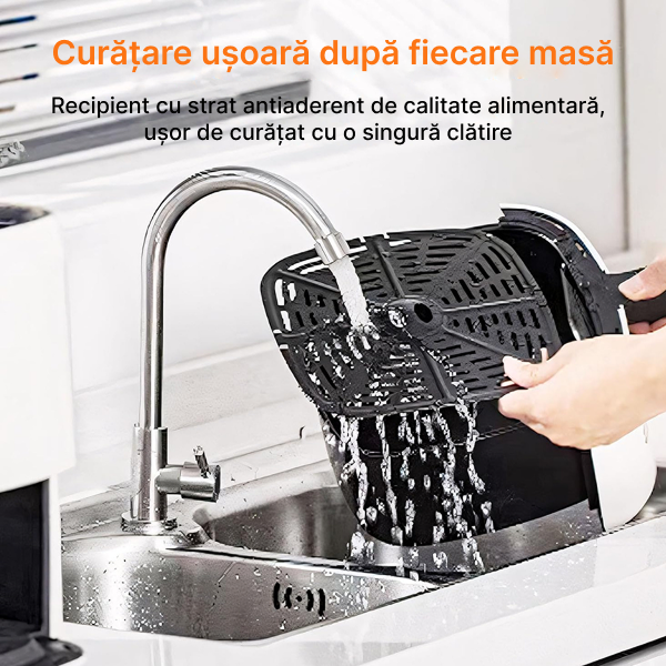 Tăvi detașabile, compatibile cu mașina de spălat vase. Strat antiaderent pentru gătit fără lipire și mai puțin ulei.