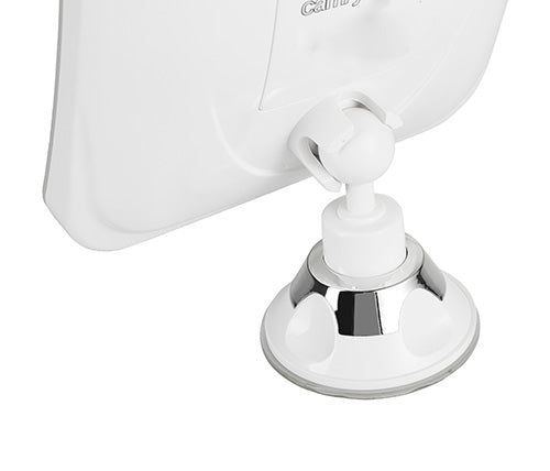 Oglinda se fixează cu o ventuză cu sistem de blocare – fără șuruburi, fără bormașină, fără a strica faianța sau oglinda existentă. Pur și simplu presezi ventuza pe suprafață, blochezi mecanismul și oglinda stă ferm pe loc. Se rotește 360°, astfel încât poți ajusta unghiul exact cum ai nevoie. La fel de ușor se demontează și o poți lua cu tine în călătorii.